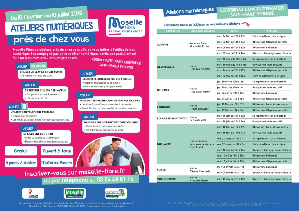 En collaboration avec la Communauté d’Agglomération Saint-Avold Synergie, Moselle Fibre vous propose des ateliers afin de vous initier à l’utilisation du numérique !