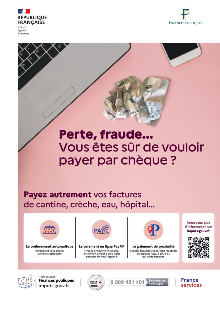 À compter de 2027, le Trésor Public n’acceptera plus les chèques pour le règlement de vos factures d’eau et d’ordures ménagères.