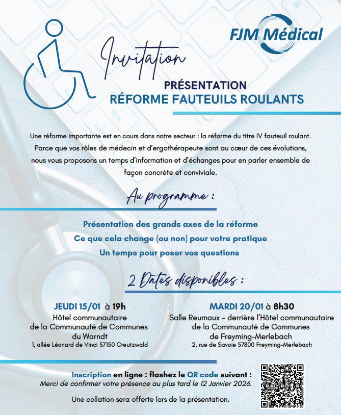 L’entreprise FJM Médical SAS organise 2 réunions afin d’informer sur la réforme des prescriptions de fauteuils roulants dans notre secteur.